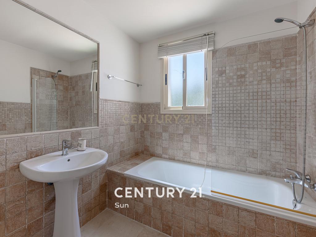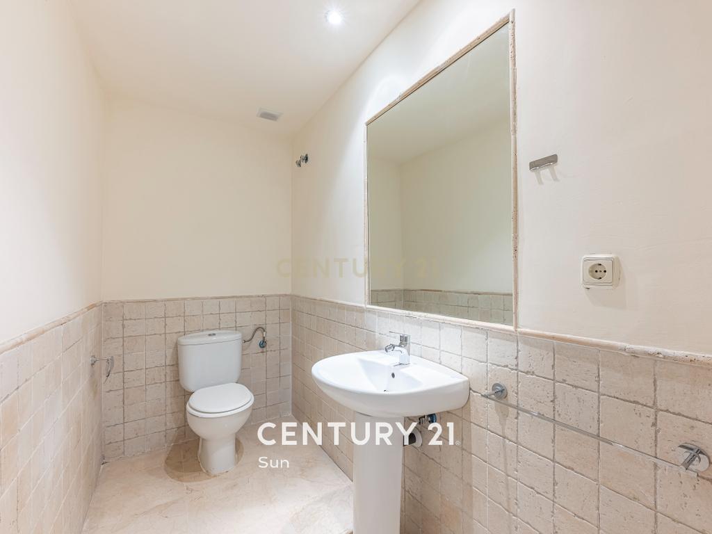 La planta principal le da la bienvenida con un soleado patio que conduce a una amplia cocina independiente completamente equipada. El generoso salón-comedor de concepto abierto se abre a una terraza orientada al oeste y a un jardín privado, con acceso directo a la piscina comunitaria, perfecto para relajarse o entretener a invitados. Un aseo de cortesía añade practicidad a esta planta.